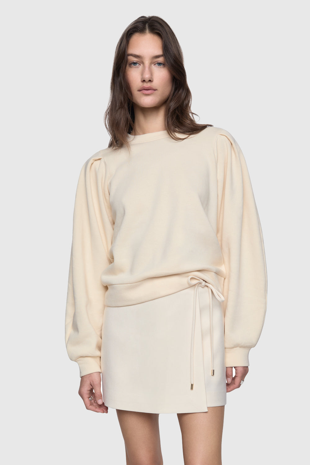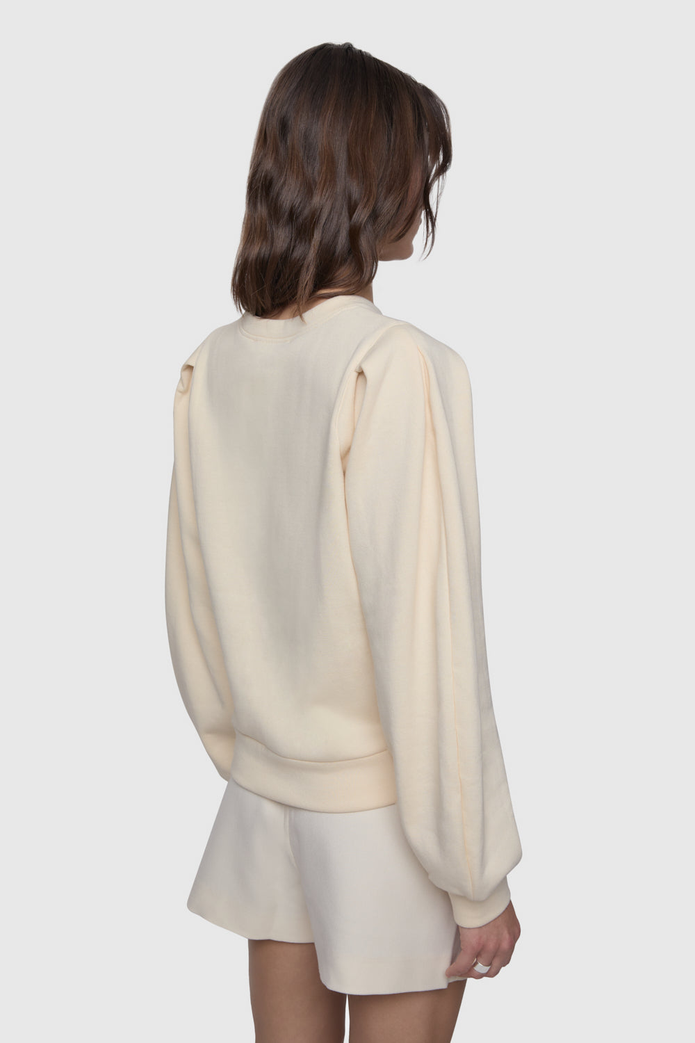 The Charli Sweatshirt is a stylish pleated long-sleeve knit top featuring a classic round neckline and ribbed bottom openings for a modern, relaxed fit. Combining comfort with a touch of elevated detail, it’s the perfect piece for effortless, everyday chic.