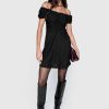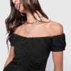 Our Devin Off Shoulder Dress is combines romance and ease with its playful cap sleeves and subtle ruched detailing. This mini dress features a metallic shimmer and simple design, making it a unique wardrobe staple.