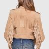 The Gemma Suede Jacket is a statement-making moto jacket crafted from soft, real suede, featuring bold fringe detailing at the front and back for a touch of Western-inspired flair.