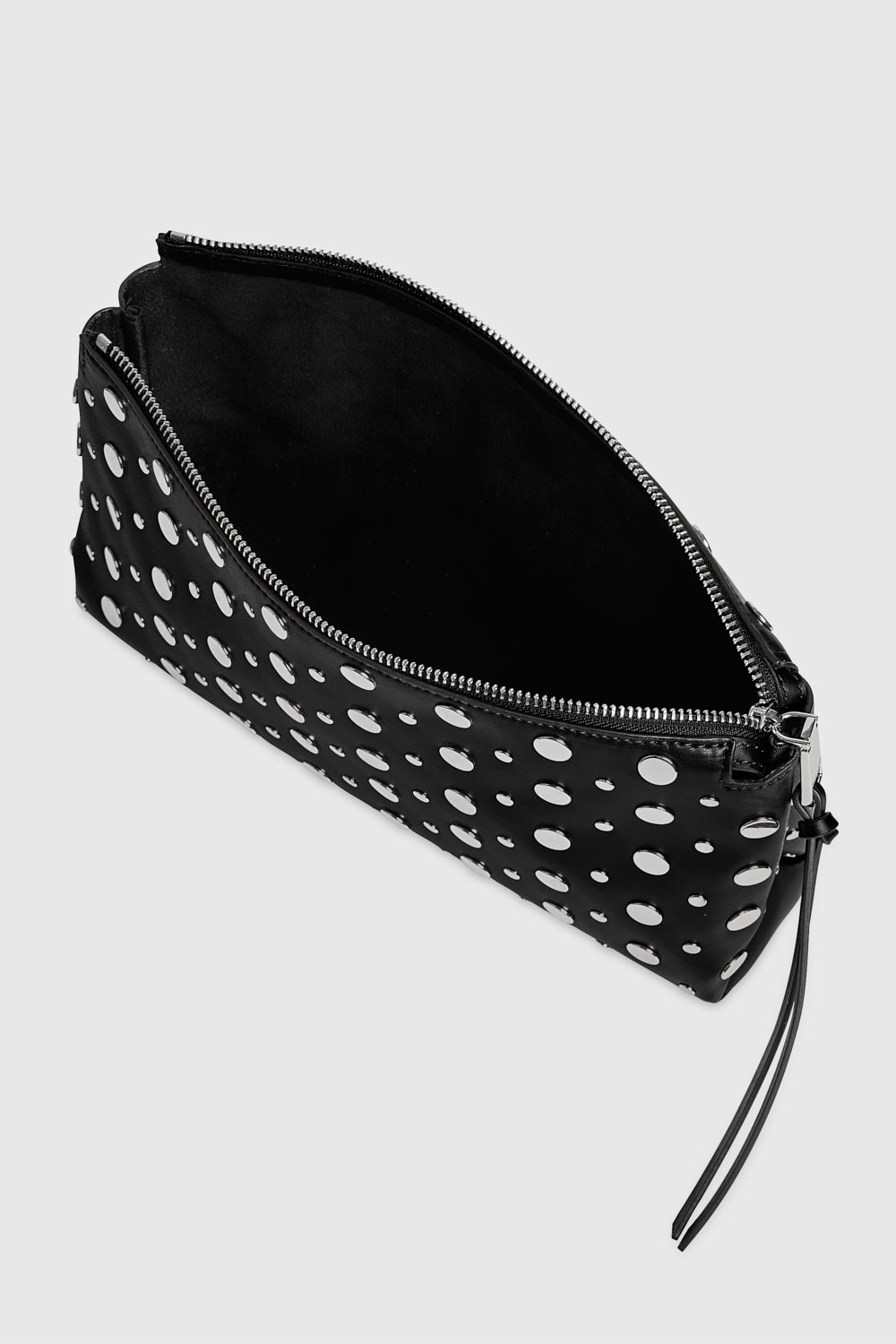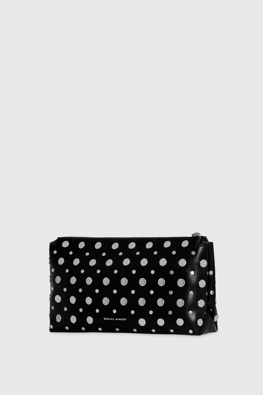 Make a statement with the Ayla Studded Clutch. This compact piece is crafted with shiny silver studs for a rebellious edge. Designed to fit just the essentials, it’s finished with a zip closure and signature fringe pull, perfect for nights out or slipping into your everyday tote.