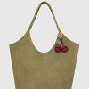 Sweeten up any bag with this playful touch. The Cherry Charm features knotted cherries, leaf detail and an antique brass ring that clips easily onto your favorite tote or keys. A tiny pop of personality that makes a big statement.