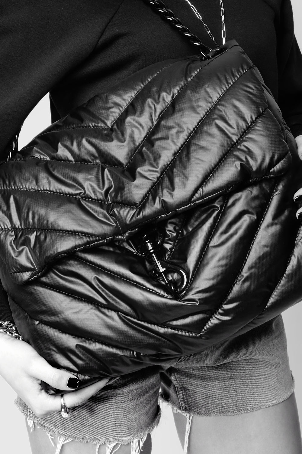 The Edie Nylon XL Shoulder Bag makes the perfect roomy, everyday companion. This versatile bag is designed with a pull-through chain shoulder strap, antique brass hardware, and a back exterior pocket that’s perfect for slipping your phone into.