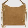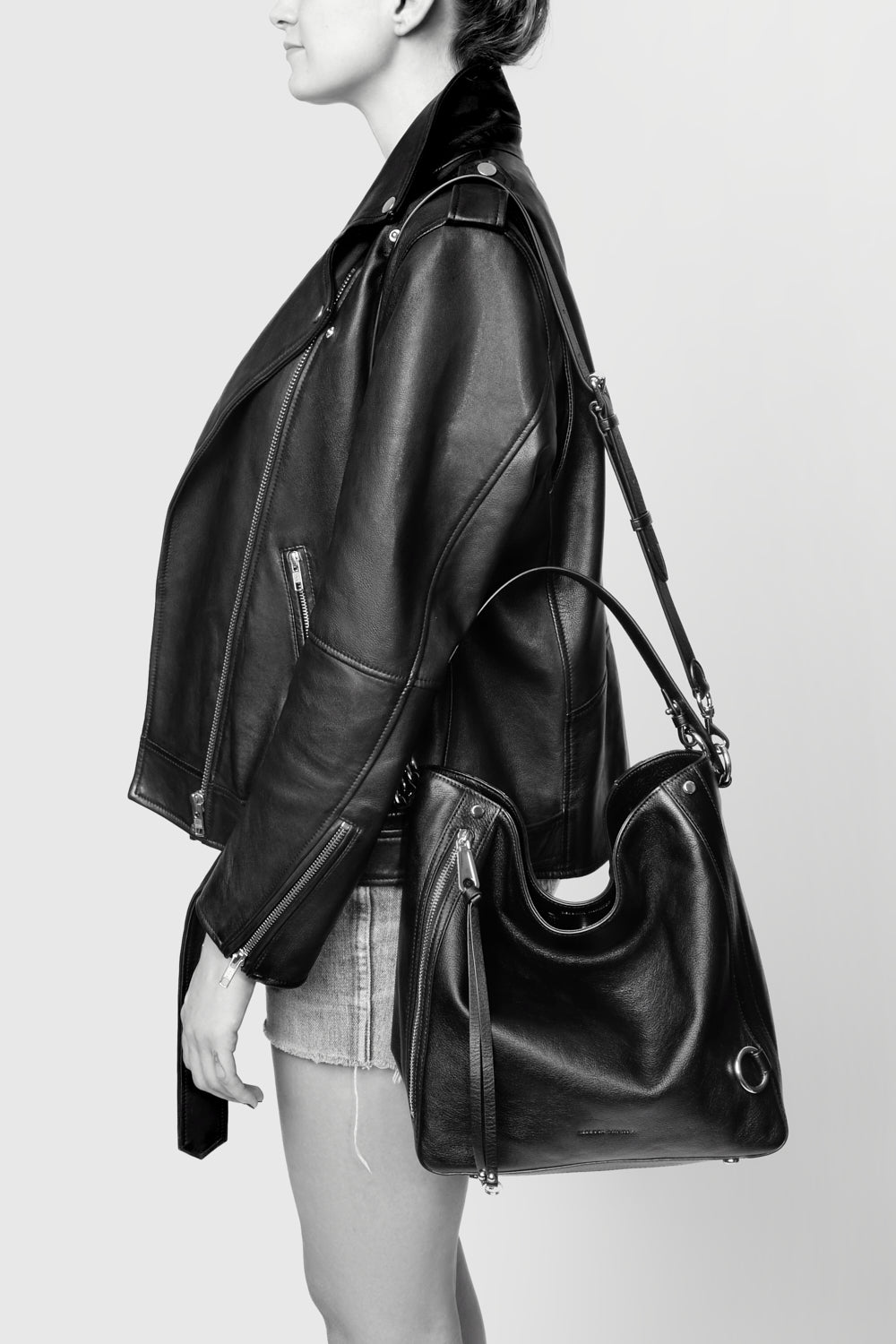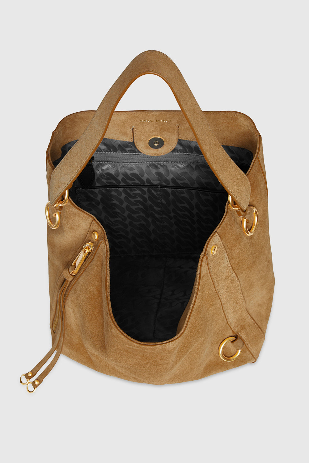 Crafted in supple suede leather and accented with antique brass hardware, the new M.A.B. Hobo Bag is spacious enough for your laptop and then some. Plus, the adjustable shoulder strap can be worn as a crossbody, so it will lighten the weight you’re carrying.
