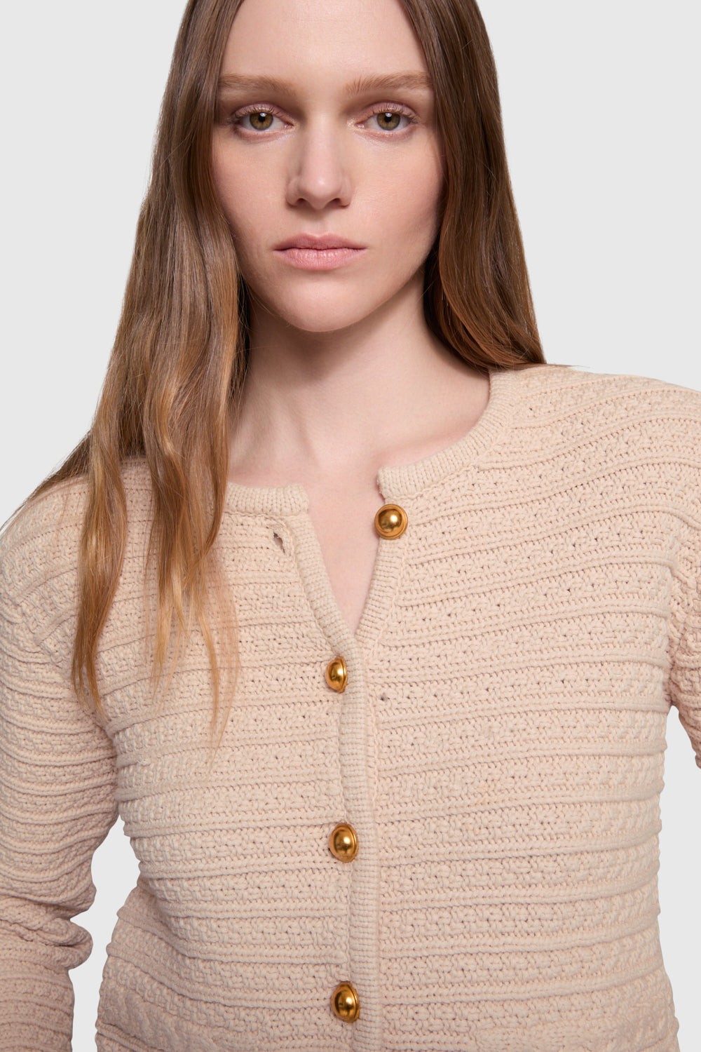 The Isla Braided Cardi is a cozy, cable-braided knit cardigan featuring dome snaps at the center front placket for a modern twist on a classic design. With its intricate texture and relaxed fit, this cardigan is perfect for layering over any outfit.