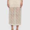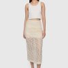 The Jaci Midi Lace Skirt features intricate floral lace with a half-lined design, creating a sheer finish at the bottom for an ethereal touch. A subtle slit at the center back ensures ease of movement, making this skirt both elegant and practical.