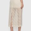 The Jaci Midi Lace Skirt features intricate floral lace with a half-lined design, creating a sheer finish at the bottom for an ethereal touch. A subtle slit at the center back ensures ease of movement, making this skirt both elegant and practical.