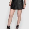 The Julia Leather Skort is a chic mini skirt featuring an exposed zipper front opening and welt pockets on either side, combining functionality with edgy style. Crafted from luxurious leather, it effortlessly elevates any ensemble.