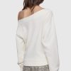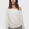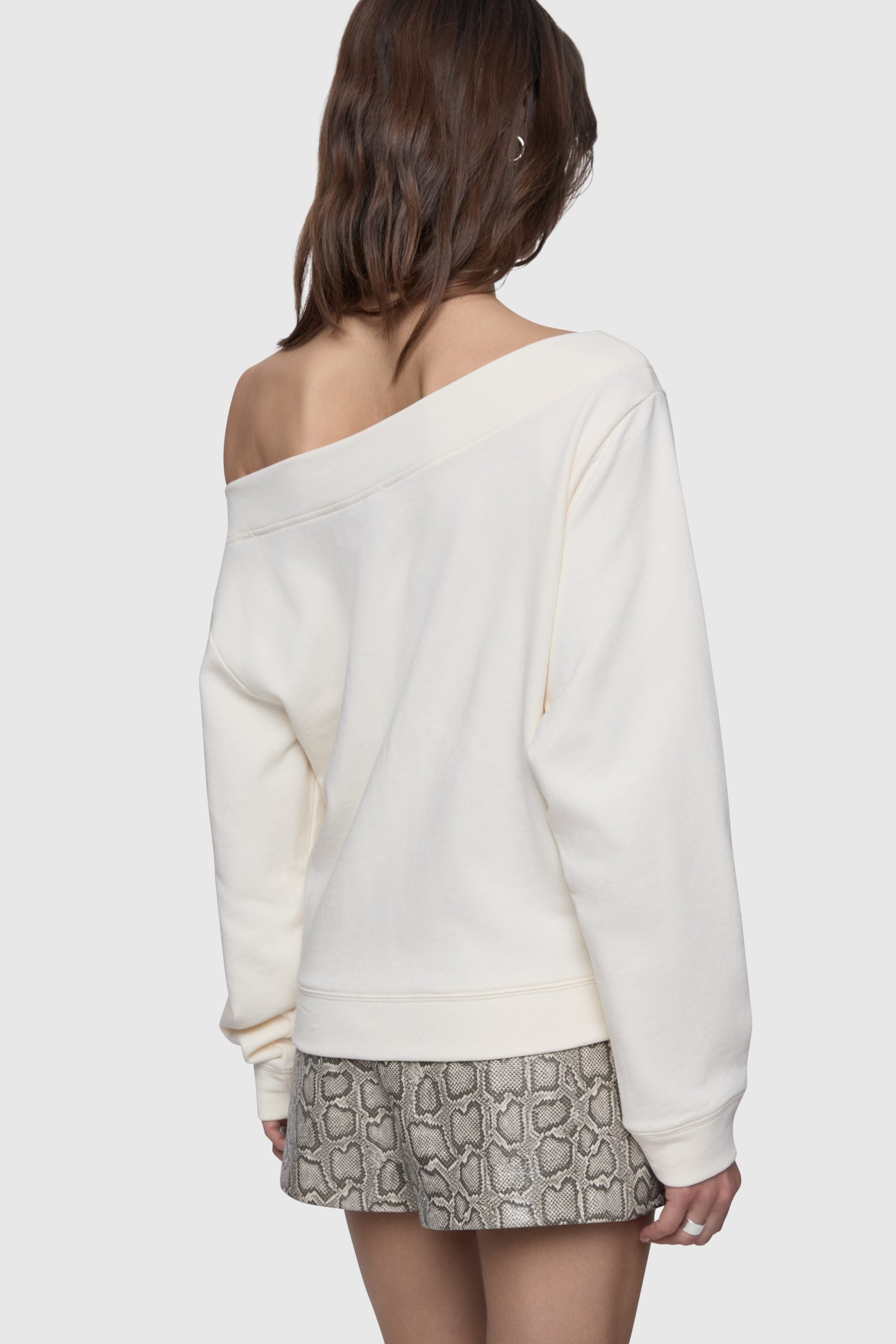 The Kora Off Shoulder Sweatshirt is a relaxed knit top that drapes off the shoulders for a laid-back look, featuring ribbed openings and a ribbed neckline for a touch of texture.