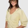 Rebecca Minkoff Women’s Naomi Pleated Short Sleeve Top | Straw