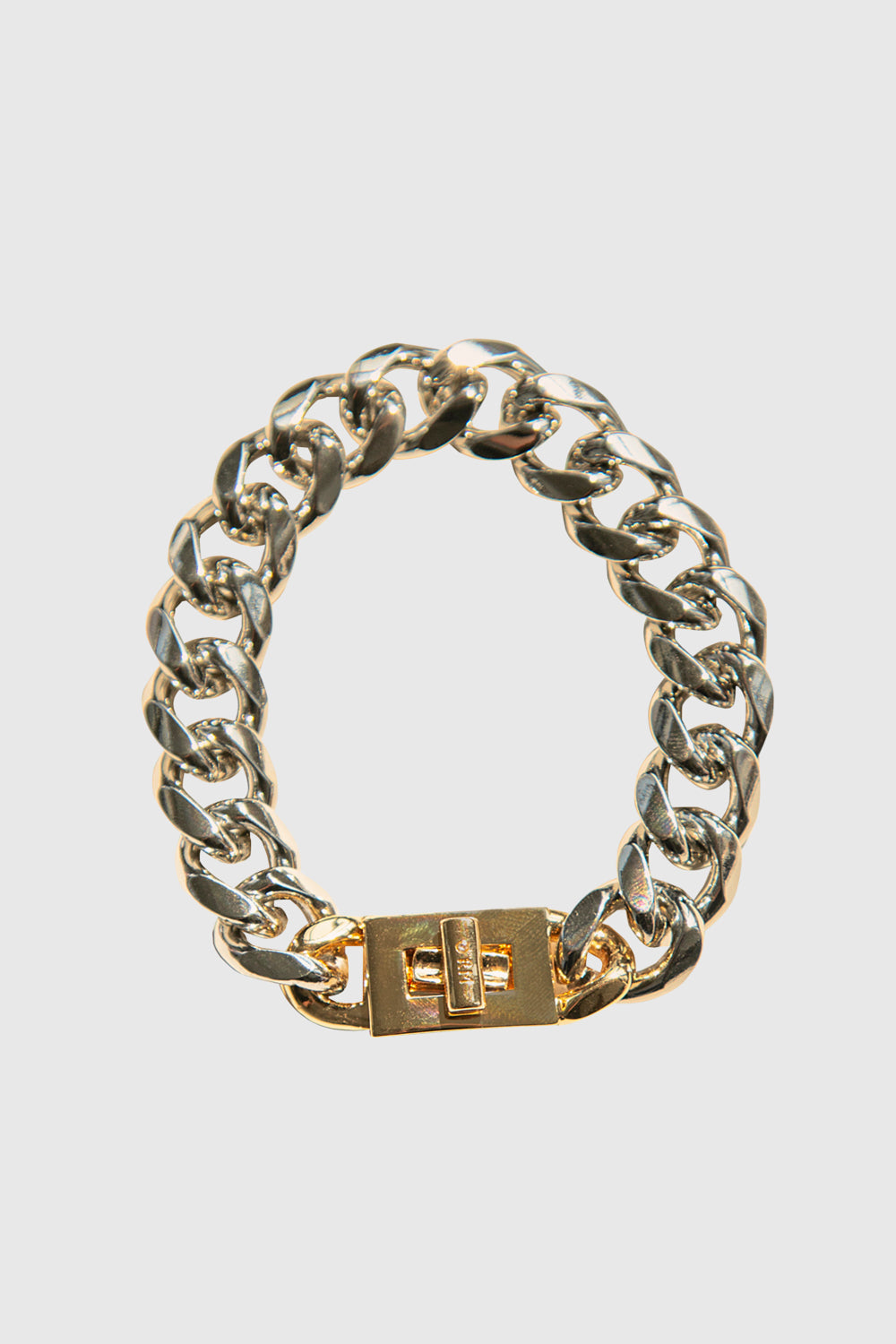 Vintage vibes. This chunky curb chain bracelet is crafted from a polished mix of silver and gold and features a padlock closure for a retro look.
