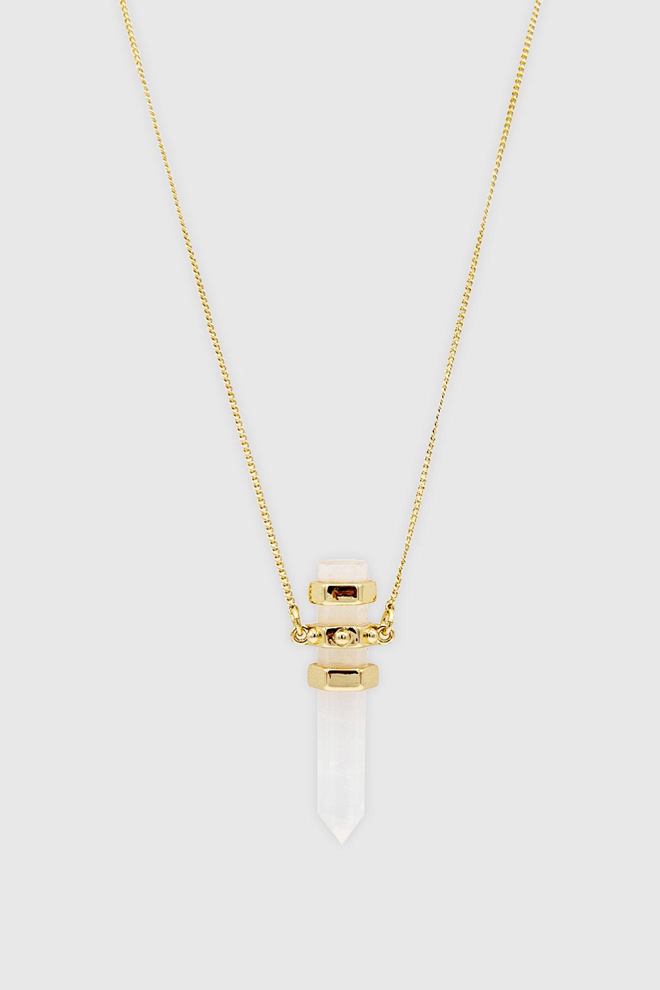 A perfect addition to your everyday rotation, this delicate necklace is adorned with a quartz pendant that’s strung on a slim gold chain. Wear it solo or layer it with other styles.