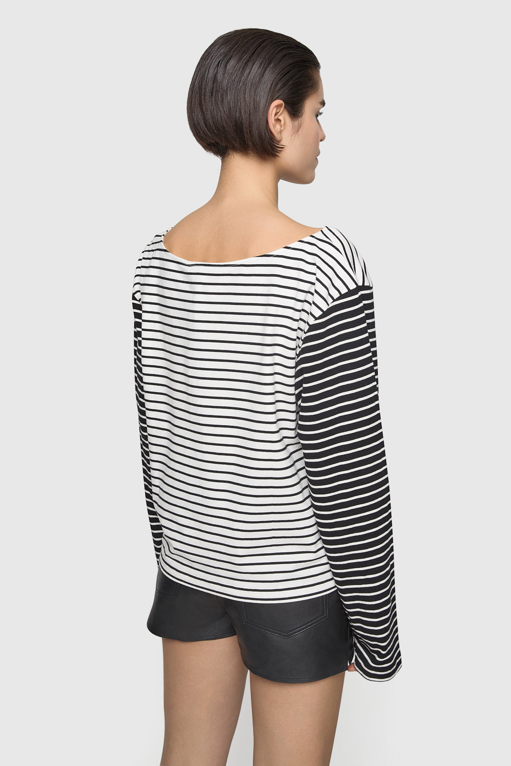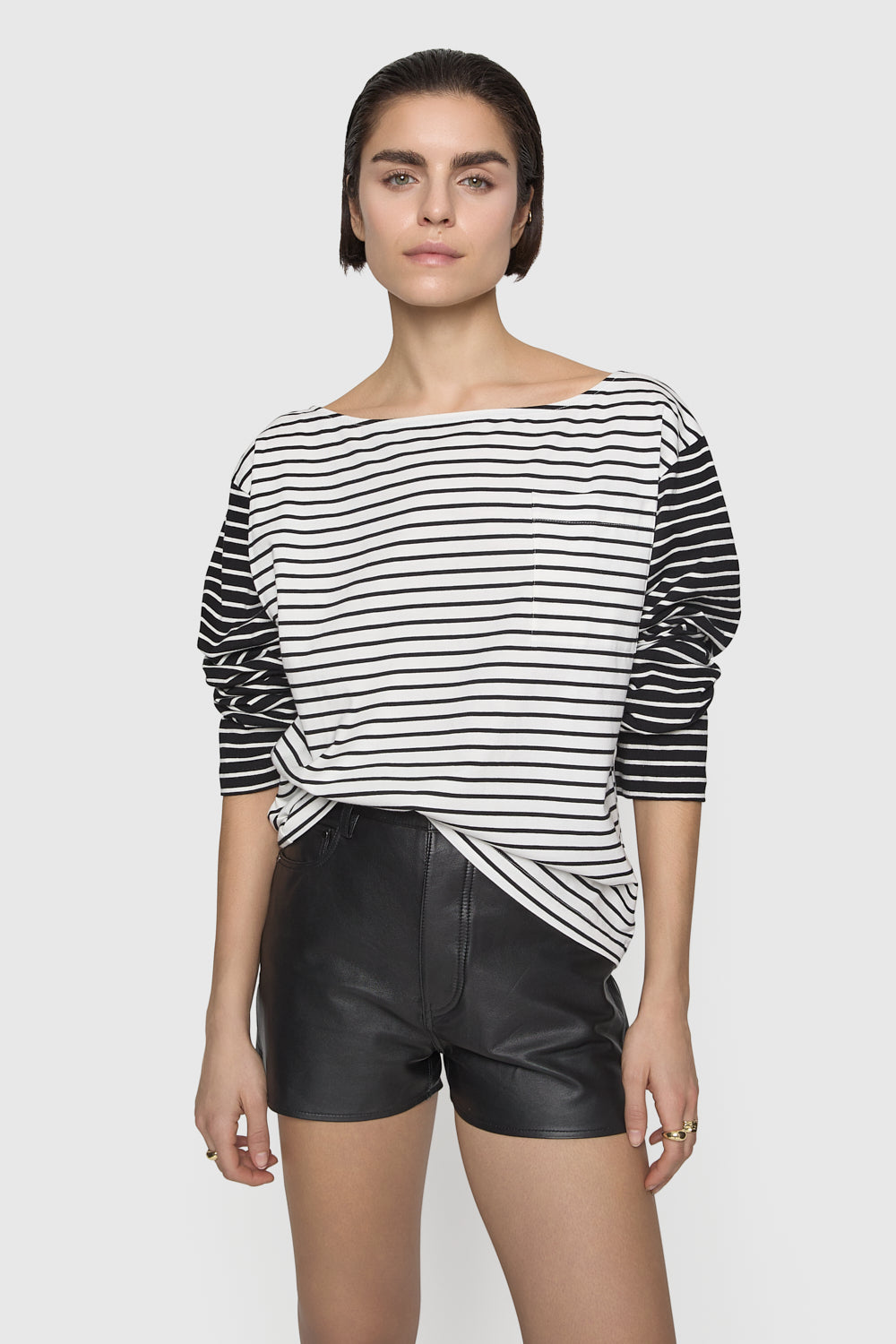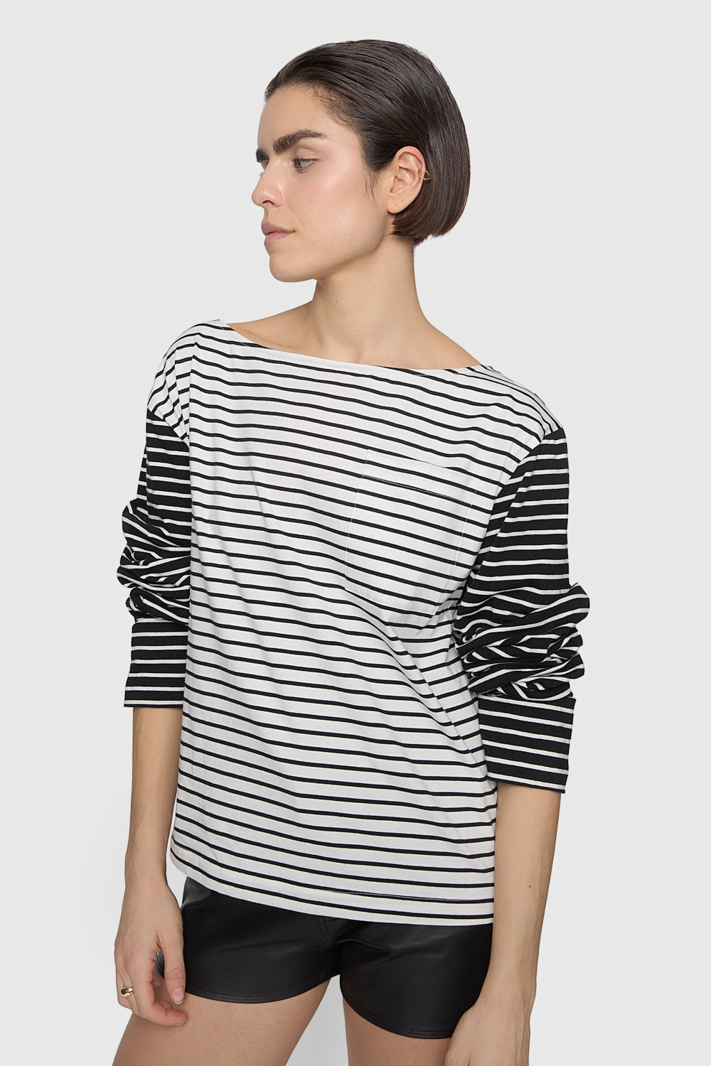 Rebecca Minkoff Women’s Ruby Stripe Pocket Tee | Ecru Stripe & True Black Stripe