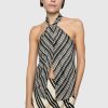 Rebecca Minkoff Women’s Selah Halter Top | Black Textured Stripe