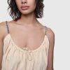 The Serena Mini Tie Dress is a flirty sleeveless mini dress with gathering at the bodice and a cinched in waist. The low back neckline is adorned with chain strap detailing and the front keyhole cutout can be altered with the self ties at front.