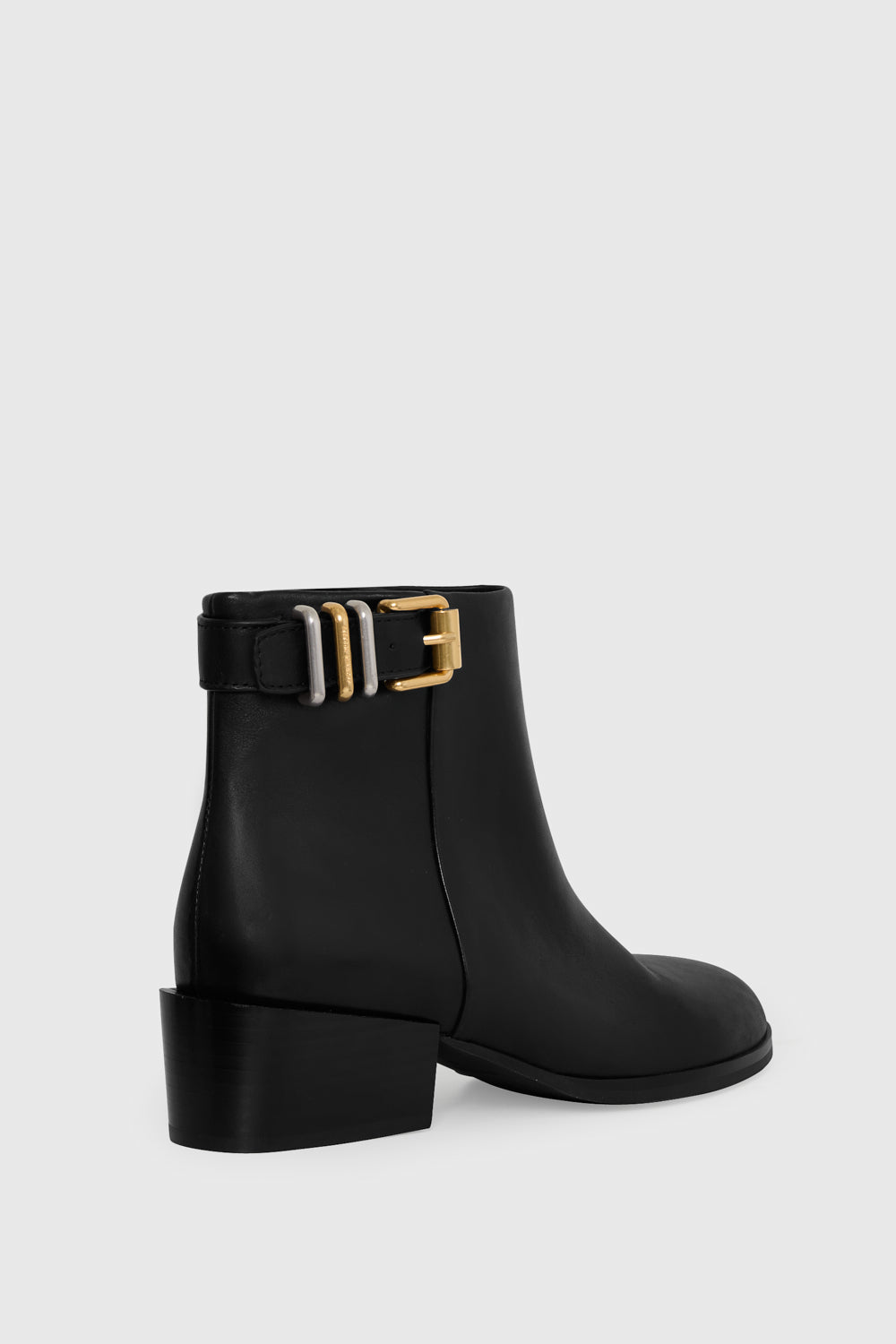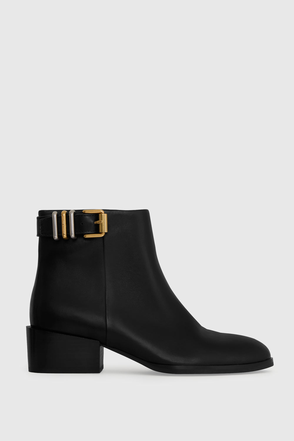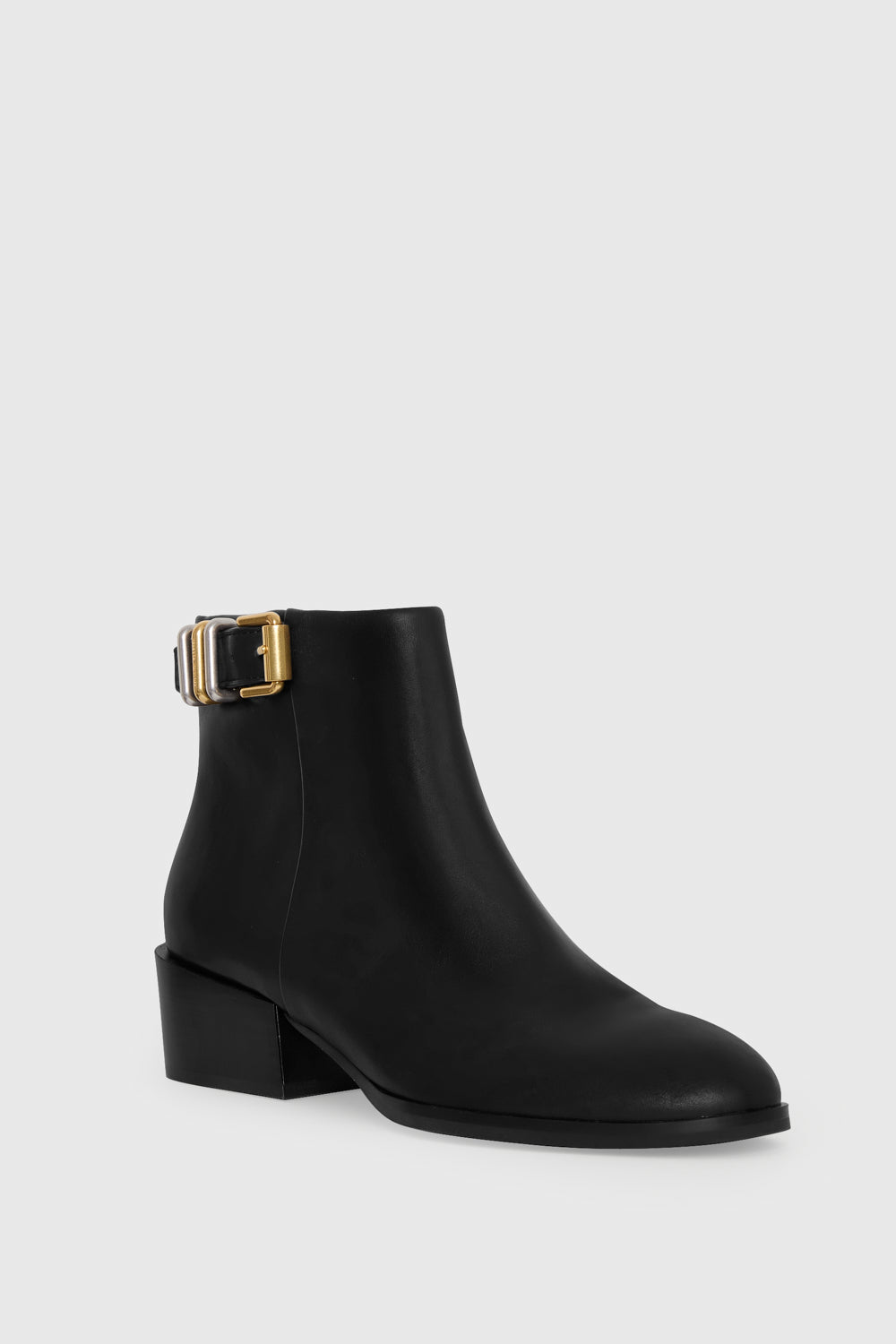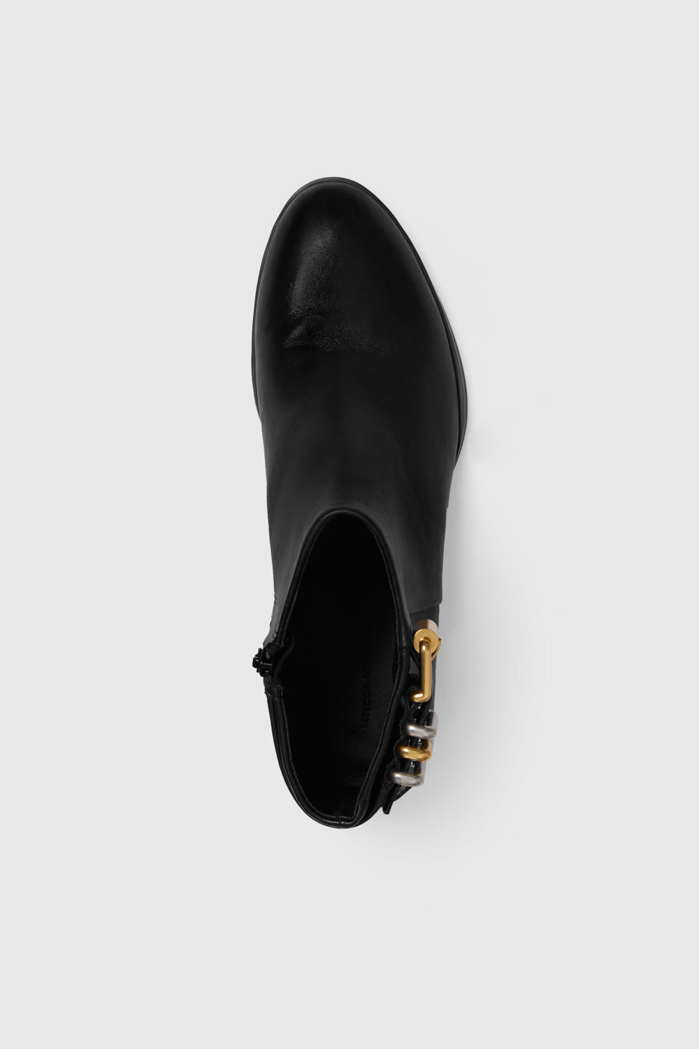 The Buckle Up Bootie brings edge to your wardrobe with bold, oversized buckles and sleek leather construction. Its pointed toe and sturdy block heel add a modern, polished look, while a padded insole ensures comfort for all-day wear.