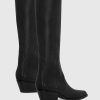 Classic Western, redefined. The Colt Tall Boot blends charm and sophistication for a look that’s both elevated and grounded. Crafted in rich black leather with subtle stitching and a stacked Cuban heel, this knee-high boot makes a statement without trying too hard. Whether paired with denim or a flowing skirt, the Colt is your ultimate power move in boot form.