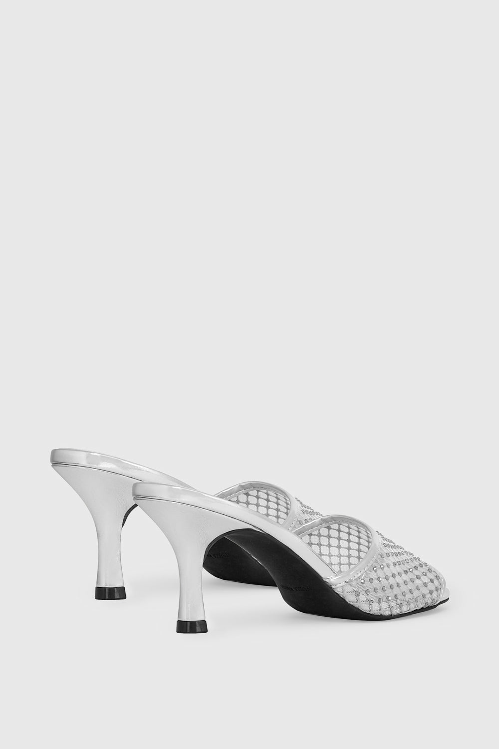 The Mesh Mule adds a touch of glam with its shimmering micro-pyramid crystal embellishments. Designed with a breathable mesh upper and a sleek round toe, this mid-heel slide delivers effortless sophistication. A padded insole offers extra comfort, while the rubber outsole ensures stability with every step.