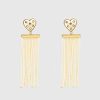 These lightweight earrings are strung with dainty cream-colored beads that are anchored by studded heart pendants.
